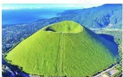 Mount Omuro, located in Ito, Shizuoka Prefecture, is a 580-meter extinct volcano famous for its perfectly symmetrical conical shape. Covered in lush grass, it presents a different charm in each season and is known as the “Natural Landmark of the Izu Peninsula.”
